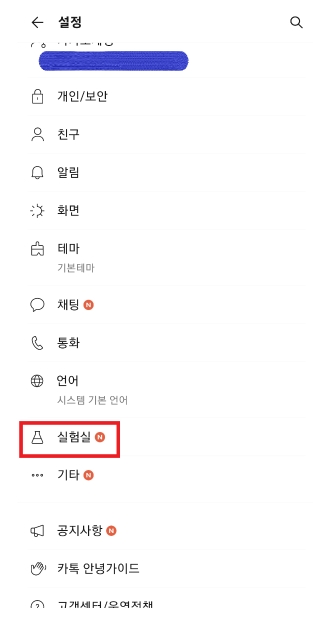 ㄴ) 설정 화면에서 [실험실]을 선택합니다.