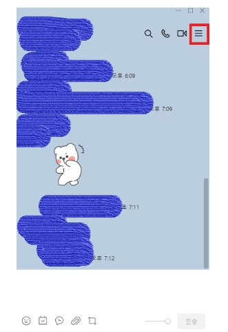 ㄱ) 조용히 나가길 원하는 단톡방 입장 후 우측 상단의 [☰] 메뉴 버튼을 선택합니다.